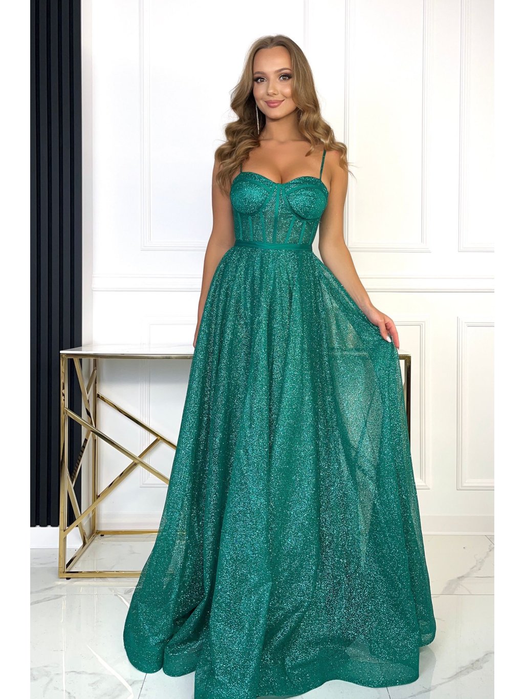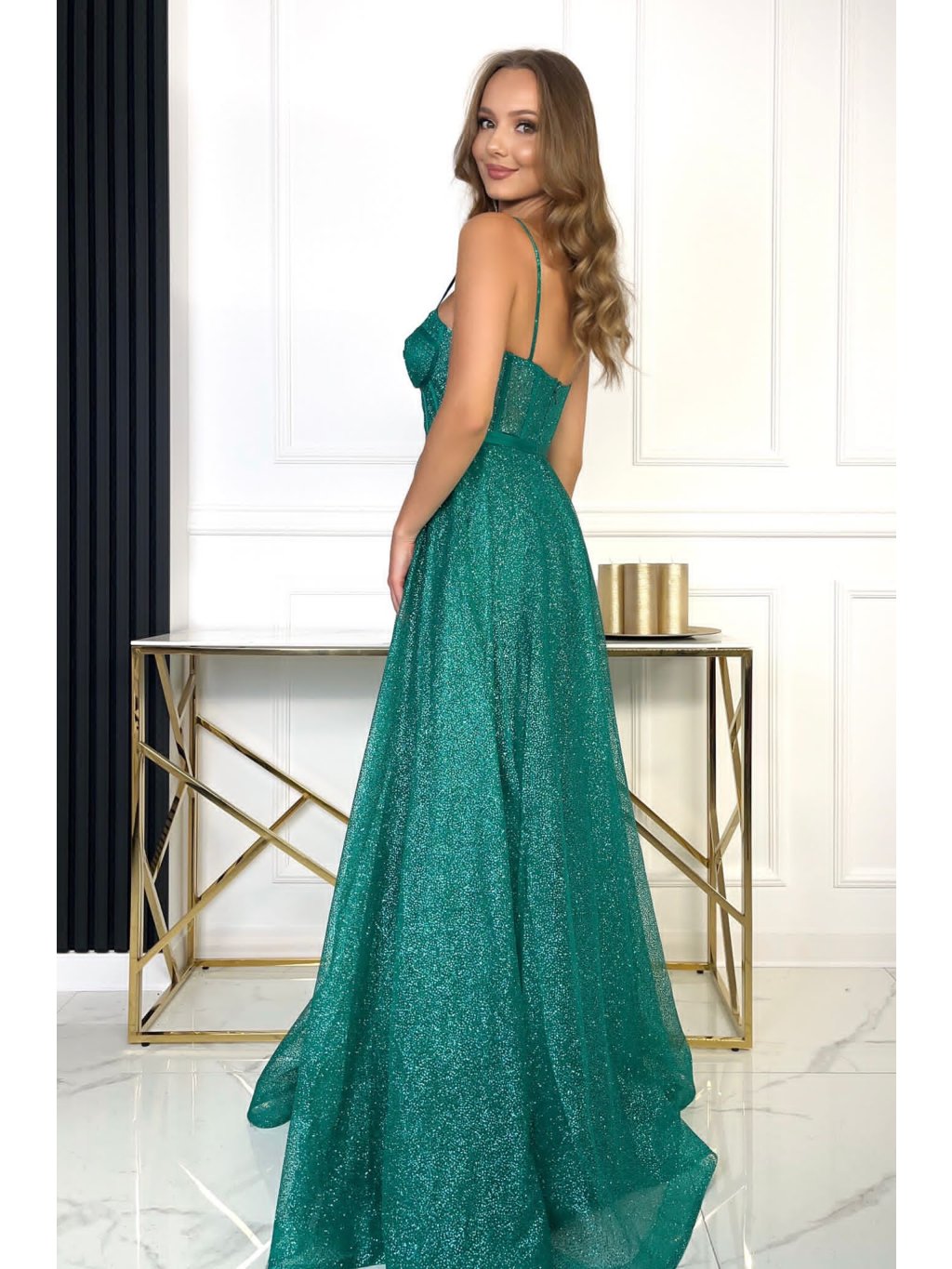 Tyto šaty jsou ztělesněním luxusu a sebevědomí. Třpytivý materiál podtrhuje ženské křivky a nádherně odráží světlo při každém kroku. Díky jemným ramínkům, rafinovanému živůtku a lehce splývavé sukni působí šaty vzdušně, ale přesto majestátně.