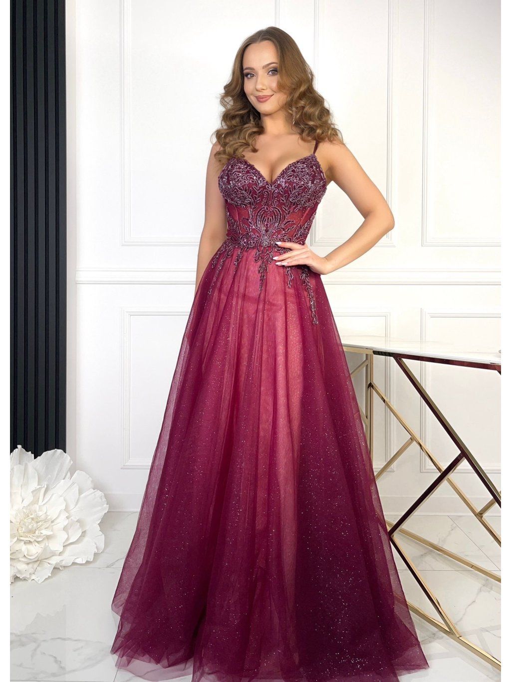 ❤️ Třpytivý materiál s jemným leskem při každém pohybu❤️ Tylová sukně se světlejší spodní vrstvou pro krásný hloubkový efekt❤️ Bohatě zdobený vrchní díl, který přitáhne pozornost❤️ Šněrování na zádech – šaty se dokonale přizpůsobí postavě❤️ Vzdušná sukně pro elegantní a lehký pohyb