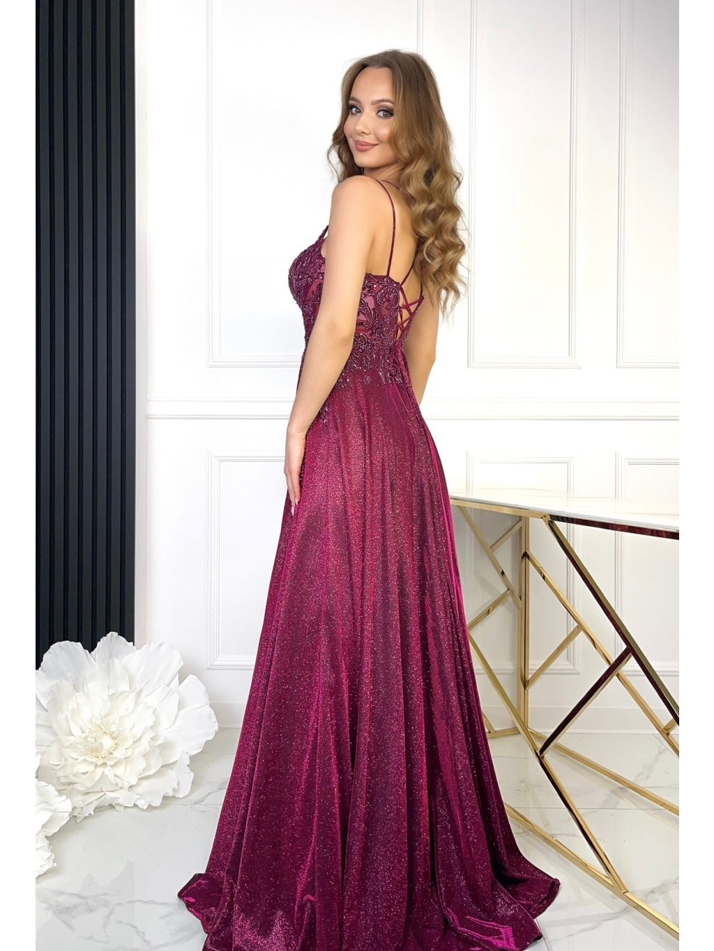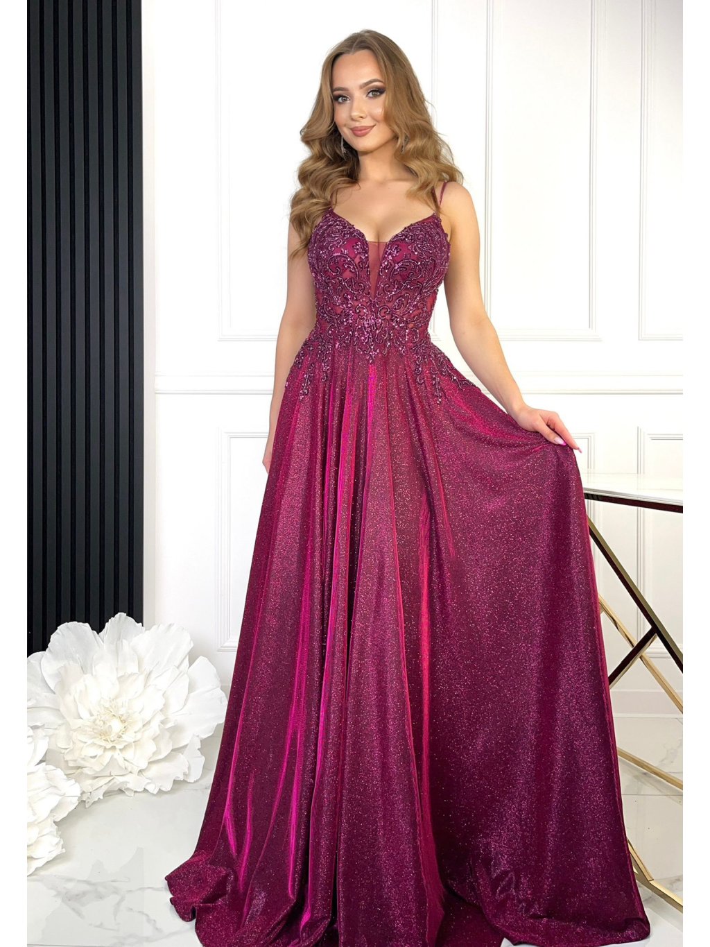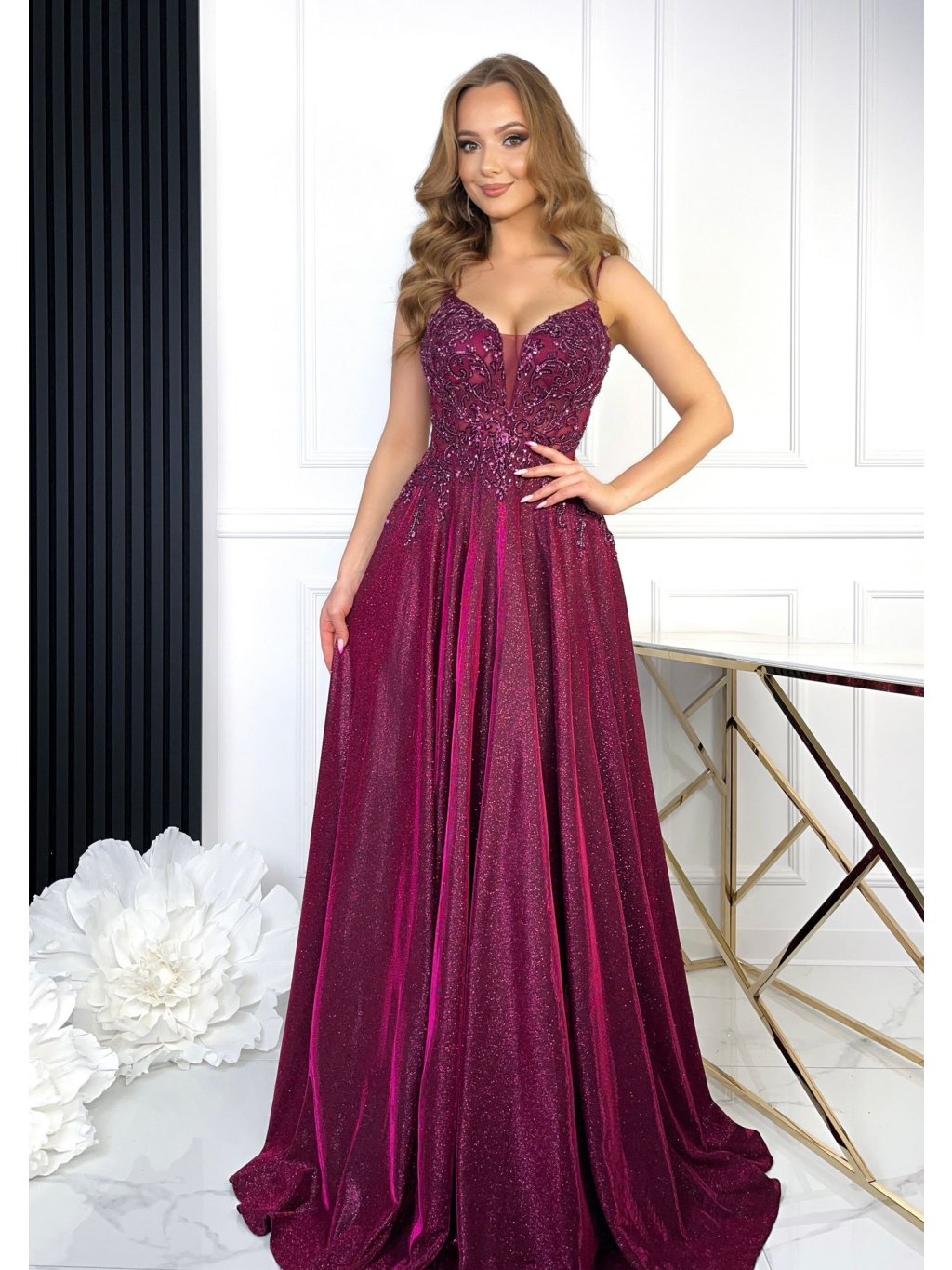 Zdobné malinové šaty Michalina